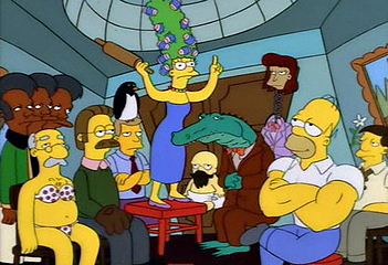 Marge: Legalised gambling is a bad idea. You can build a casino over my dead body. Blah blah blah blah blah. Blah blah blah, blah blah blah blah blah.
