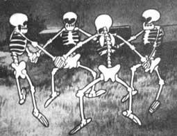 Animated by legend Ub Iwerks, the sequence presents four skeletons who – when they are not in the grave of the deceased – they leap up and dance the night away, playing rib-cages like xylophones and fixing their bones together akin to the Sedlec Ossuary in Prague. Much like the Buster Keaton and Charlie Chaplin posts before, again, we have a film easily available and it can be viewed here. (Nb – It has been incorrectly claimed that the skeletons dance to the Danse Macabre, when in fact it is Grieg’s March of the Dwarves that is played.