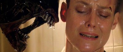 Briefly, the adoption of faith by the convicts is equally interesting. Does it highlight how people trapped and isolated develop faith while Ripley, unlike the convicts (except Dillon perhaps?) accepts death gladly and gives her own life for the future and life of others. Opposed to dying for a spiritual cause, Ripley dies for a human and earthly cause. Unfortunately, I have not seen Dreyer’s Passion of Joan of Arc, but I understand that this film is an inspiration for Alien 3. At any rate, like Ripley, Joan of Arc was a martyr – so the martyrdom of a woman of faith is contrasted nicely with Ripley – a martyr of no-faith … except her constant-faith in humanity.
