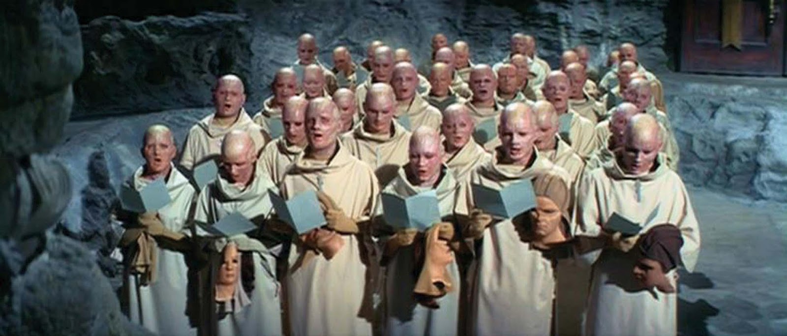 Akin to fundamentalistm and terrorism, these religious characters are dangerous and, though they do not believe it, they are a threat to the society they represent. Their humanity has been replaced by a deeply-rooted sense of purpose – the bomb. They can force the Apes to see visions which are untrue as if to highlight how faith is beyond what you can see in front of you, and what is around you. It is this same attitude to faith that ensures Dr Zaius (Maurice Evans) and General Ursus (James Gregory) push through the vision and manage to break past. These apes have seen too much – and no image will satisfy their deep-desire for dominance of the planet. Both faiths are in opposition and we see the age-old argument as two conflicting dogma’s compete for control of a civilisation.
