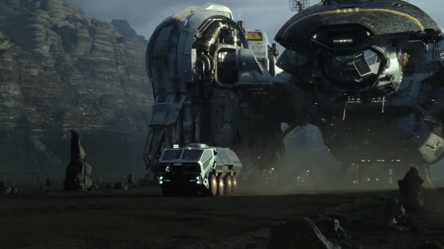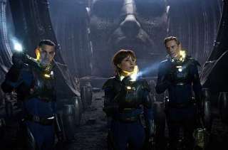 Small nods to Alien are littered all over the place – from the meal-time introduction of the crew, through to the planet we visit and the ‘space-jockey’ reveal. Storms on the planet provide ample opportunity to show the scale of the planet – much-like the 1979 original – and we see the small size of the humans in correlation to what they discover. Like the original, every shot could be freeze-framed and hung on a wall.From the introduction of Elizabeth Shaw (Noomi Rapace), we know that faith is important to her. Despite her huge interest in seeking answers to questions that are found in the farthest reaches of space, and exploring historic sites that existed thousands of years before Jesus, she still wears a cross with pride. This is human – faith and belief is human. We believe in these things because, whether we seek it on earth or in death, we desperately want something more than our small-stay on this planet.