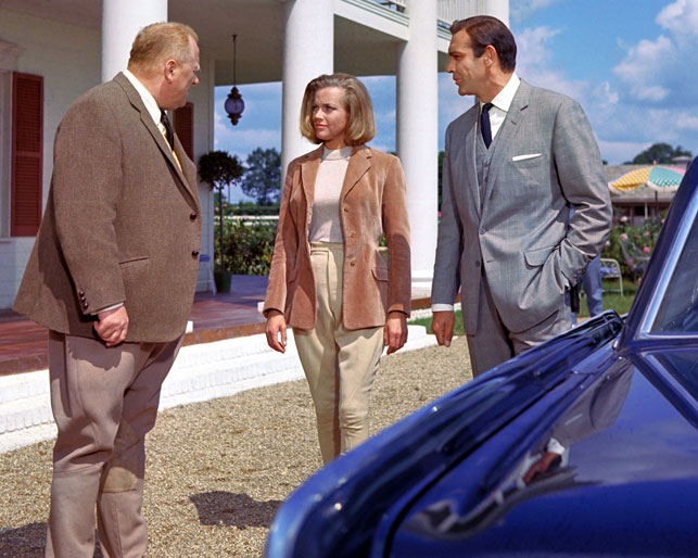 Ian Fleming’s book openly acknowledges the lesbianism of Tilly Masterson and Pussy Galore, but the film only hints at Pussy (Honor Blackman) as homosexual. Like Tilly (Tania Mallet), in the film, she is ultimately swayed by Connery’s charm. Fleming connected Goldfinger with SMERSH (the villains which became SPECTRE in the film series), but the film detaches him and, even ignoring the Cold War element, connects him with China and the atomic bomb. Coincidentally, it was China who detonated their first atomic bomb in October 1964. Writers Richard Maibaum and Paul Dehn even corrected Fleming’s impractical end-goal of stealing gold bullion from Fort Knox and openly acknowledged it in the film – as Goldfinger reveals his ‘true’ plan of setting an atomic bomb off inside Fort Knox, contaminating the bullion itself. Talk about capturing the zeitgeist.