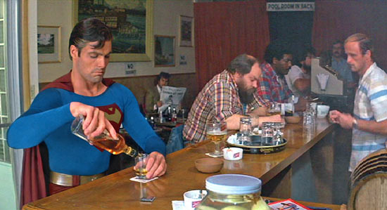 What frustrates me more and more with the series is the potential of a strong film that always seems to drop in quality within seconds of the opening. Superman III could’ve been a film that tackled the social-state of the US, using Richard Pryor as a catalyst to become corrupted by the capitalist-core of the 1980’s. Instead, Pryor is comic-relief to the obvious “big bad” Ross Webster. Superman III could’ve been a film that toyed with the duality of Superman as he is constantly fighting against the good role he should play – and the evil role he could play. Instead, it is a short-lived period in the middle-act that bad Superman figths Clark Kent (the ‘good’ Superman?). Imagine, a new crystal could be found that simply corrupts Superman as we watch a film whereby Kal-El struggles with a moral dilemma – to use his powers for good or evil. Superman III could have shown us a time whereby the power of technology begins to self-control and become an enemy unto itself – akin to The Matrix. Instead, it is simply a weapon briefly used by the villain to attack coffee plantations (???). So often, it seems to hint at an interesting subtext without truly gaining the scope or scale that it needs to create to explore the issues it wants to discuss.