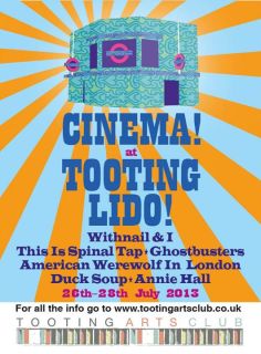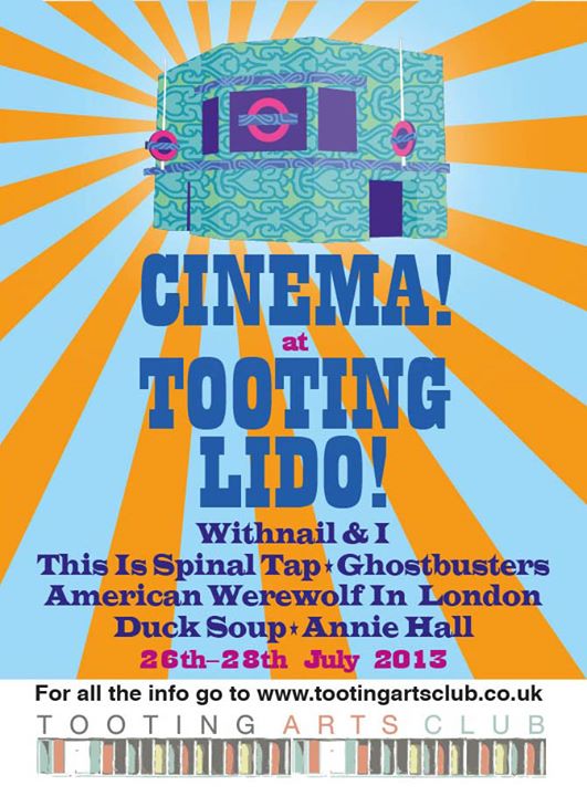 Theatre group, Tooting Arts Club, hold an annual ‘Lido Cinema’ to raise funds for future performances (This year, A Midsummer Night’s Dream). Rather than a shoddy big-screen and a tray to pass around, the “lido Cinema” is a thoroughly enjoyable, unique experience whereby the grassy area behind the pool itself is transformed into a cinematic paradise. Framed by arching branches, the screen is clear and well-located – and as the double-bill begins at 9pm you can be sure that no seating position is affected by the sunlight setting. High-quality amps mean that the sound is perfect and the train-line that runs by is never a problem and, in fact, simply reminds you of the cinema-experience you are taking part in. As a bonus, Richard E. Grant shouting “I feel like a pig has shat in my head” is that-much more glorious when the space is outside. Could an evening stroller walk by the common and hear a stray c-word uttered in drunken stuppor and clarified in Grant’s exquisite tongue? I hope so.