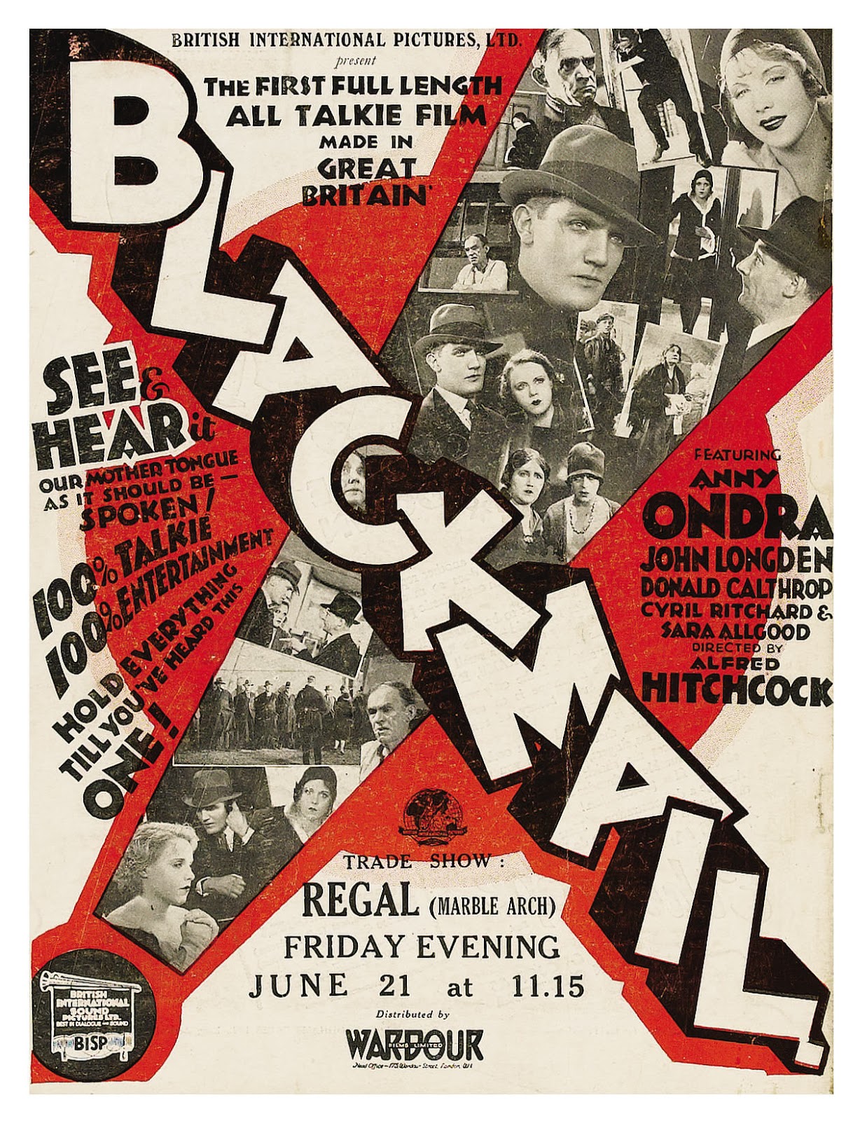 A stand out film in Hitchcock’s career, the sharp hats in silhouette show how mature Hitchcock already was in 1929. Blackmail is thoroughly enjoyable and sets the scene for the future of his films through narratives and plot-developments we have seen many times. A final chase in the British Museum seems to echo North by Northwest as characters run amongst enormous pharaoh heads leading to a climax as – akin to Saboteur, Vertigo and The Man Who Knew Too Much – Tracy falls from the top of the building, through the glass to a grisly end. But Hitch knows how to end a story and, despite a dated joke as everyone laughs at the idea of a “Lady Detective” (who would think!), a carefully controlled approach and close-up on Alice gives the impression that maybe there is more to her than meets the eye. By releasing alternate sound and silent versions to suit different audiences, Hitchcock ensured he was at the forefront of cinema. Like the continuous-shot-film Rope and 3D Dial M for Murder, In 1929, I’d like to think that many people knew that Alfred Hitchcock himself had much more to offer after watching Blackmail …
