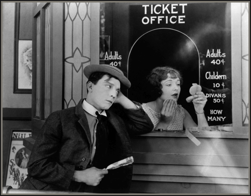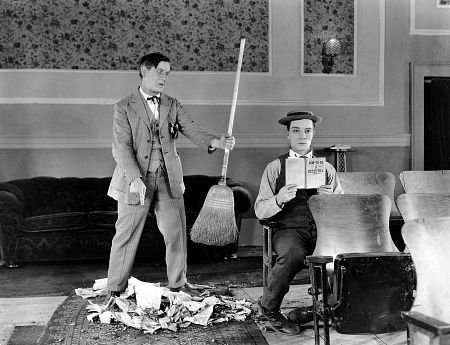 Though the themes remain innovative, it is the execution of the dream sequence that must be praised. Mounting a list of “Top Dream Sequences”, this end act would be up there with the ballet-dance in The Red Shoes and the fascinating Dali-surrealist sequence in Spellbound. Technically, the beginning of the dream shows Keaton walk from the audience and directly into the film interacting with the characters on screen. But then Keaton truly becomes cheeky as the scene on screen cuts to another, as Keaton remains on screen. He sits on a mound of sand in a desert; *snap*; he is suddenly sat on small island in the sea. This continues between different locations, as Keaton moves within the frame, and then manages to re-emerge as the character Sherlock Jr. This means that he can now continue to use the editing techniques but within the story-within-the-story – and the moment “Sherlock” walks through a half-safe, half-door, for a moment it feels like he has stepped into a third alternate world righting the wrongs of the character who set Keaton up in the first act (indeed, there is no resolution to Ward Crane’s characters theft except in the dream). This type of intelligent narrative constructed using techniques that were incredibly new for the time period simply says how ahead of his time Keaton was. Story-within-stories became the central point-of-interest for Christopher Nolan’s Inception and reflecting on reality through fantasy is not too far from the surrealism of Charlie Kaufman – and Eternal Sunshine of the Spotless Mind equally managed to use a wide variety of editing and production techniques to fool the audience. Not far from how Keaton manages to fool us as he leaps through a window and manages to completely change outfit as he passes through.