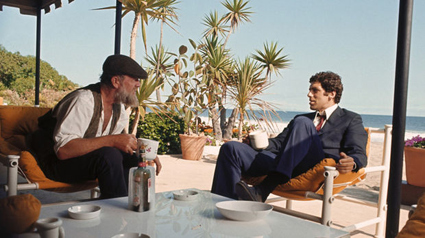 Based on Raymond Chandler’s novel of the same name, The Long Goodbye relocates Marlowe from 1953 to 1973. He may drive the same car, but he’s past his sell-by date. He mumbles and stumbles his way into frame. He struggles to make a sentence. He has barely any friends. In fact, the one buddy he does have, Lennox (Jim Bouton), needs to escape town – and Marlowe dutifully helps. Upon his return, things have changed. For one, his cat is missing. The cops are swiftly on his case, and their questioning presents a resentment that dates much further back. His new case, involving a missing drunken, abusive writer Roger Wade (Sterling Hayden) and his flowing-dress wearing, young-wife Eileen (Nina van Pallandt) reveals that his Mexico-escapin’ mate may have left a few stones unturned on his departure. Finally, enter Marty Augustine (Mark Rydell), a gangster with Arnie Schwarzenegger (literally in an uncredited cameo) as a hench man, who wants money stolen by Lennox, back. This is more than a P.I. investigation, and as his neighbours blissfully (and nakedly) meditate their way through life, Philip Marlowe wants justice – and he wants Lennox cleared for the crime of murder.