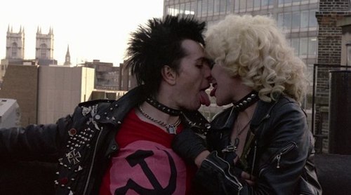 Bookended by that fateful day in the Chelsea Hotel in New York City, we’re then transported back in time to Sid (Gary Oldman) and Johnny Rotten (Andrew Schofield) scoffing, and prowling an upper class London street. A mutual friend introduces them to Nancy (Chloe Webb), and as the Pistols grow in popularity, Sid and Nancy fall in love – and fall further into heroin addiction. The rebelliousness of the band and the fame-seeking manager Malcolm McLaren (David Hayman) only seemed to support Sid and Nancy’s self-destructiveness, ultimately leading to the breakup of the band during an American tour. While Nancy seems to be the driving force behind Sid’s addiction, he is blissfully ignorant to the advice of others and their demise becomes less unexpected and more inevitable.